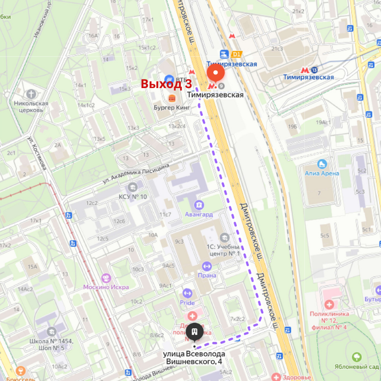 Từ ga metro Timiryazevskaya (Тимирязевская) cửa số 3, ra cửa và đến trạm xe buýt ngay phía trước. Tại đây, bạn có thể bắt một trong các tuyến 447, т78, hoặc м40к. Đi 1 bến, sau đó xuống tại улица Всеволода Вишневского rồi đi bộ vào.
